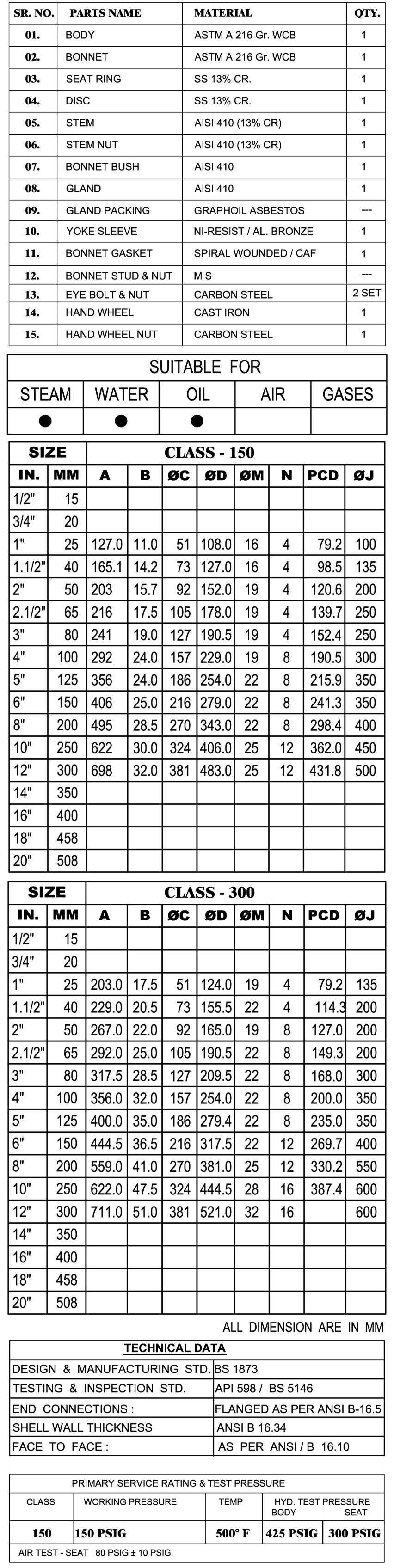 Globe valve→CLASS 150/300